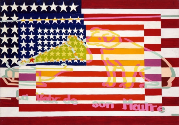 The Paul Kasmin gallery pays homage to Iolas today by presenting works from his major New York exhibitions in the 1960s. The Jasper Johns Three flags camouflage, signed Alain Jacquet, is on display there until April 26. 2014.