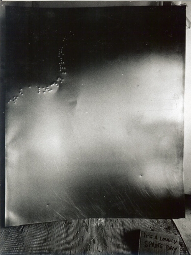 One of the discoveries of the Déjeuner sur l’herbe, is the point: when he realizes Limit between concrete and water, from the photograph of the Déjeuner, Alain Jacquet enlarges the image to the extreme until to distinguish only the distorted points of the grid.