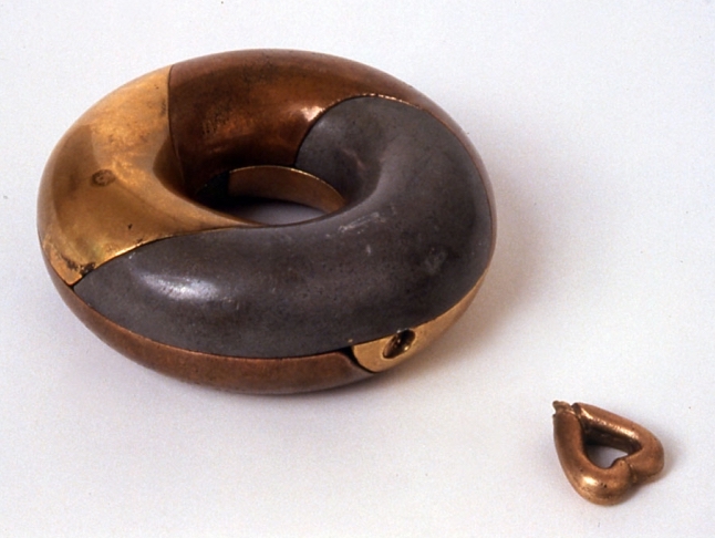 In the early 70’s Jacquet began making topological sculptures, created on the principle of the Möbius ring and the Klein bottle, which plays with reversals and orifices.