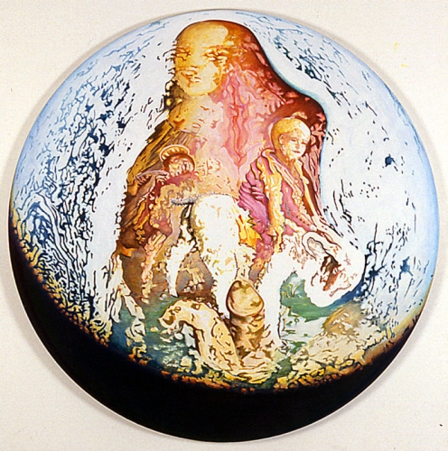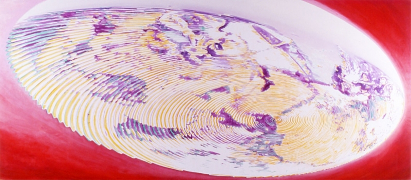 Seen from space, the Earth is only a point. In 1969, the Apollo space mission brought back a photograph of Earth taken by astronauts when they awoke. From this photograph, Jacquet will draw his First Breakfast in 1972, from which he created, between 1978 and 1988, an abundant series of works, all derived from this unique image. Jacquet appropriates the entire globe as the focal point of his work.