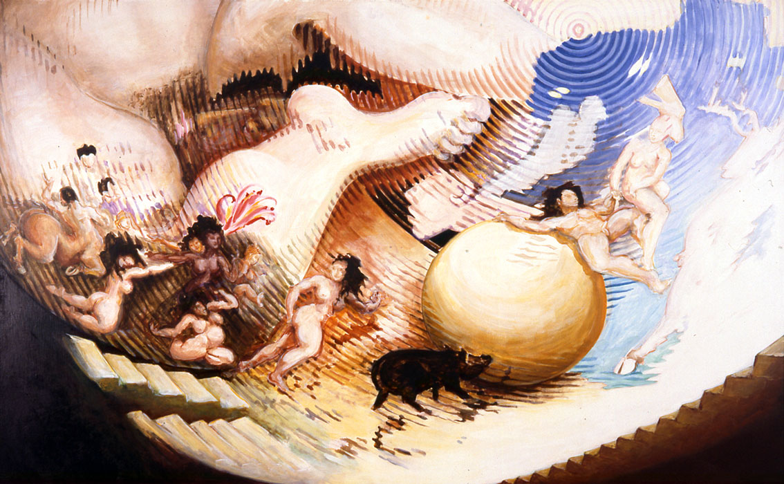 The First Breakfast is gradually distorted to reveal the artist’s “Visions”. The painter takes up the brush he had abandoned since his “Camouflages” to reveal the figures camouflaged under the cloudy surface. He shows the images of his unconscious which inhabit his gaze and populate his “Lands”.