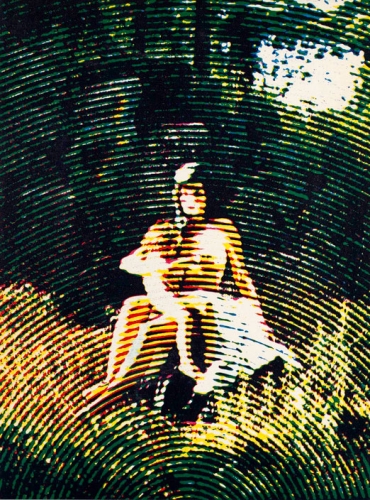 From his work on the Déjeuner and its derivatives, Jacquet begins to experiment with trames. The artist always has fun with the image, he transforms it and distorts it by playing directly with the mesh of dots inherent in the screen printing process.