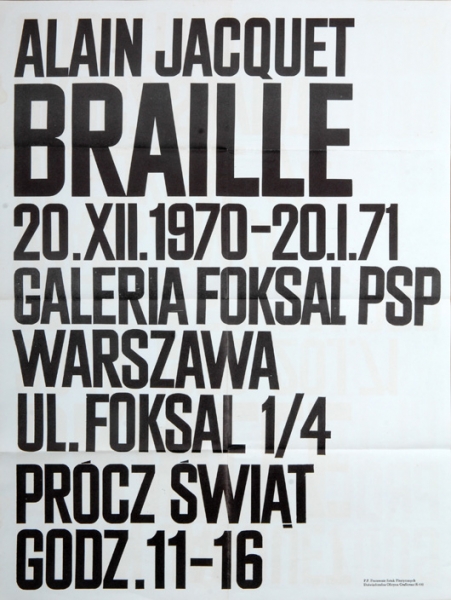 - Alain Jacquet : Braille, Galerie Foksal, Varsovie.